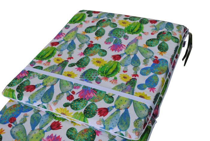Хотим предложить вам приобрести матрас для шезлонга ost-Fran тампико. Матрас выполнен в разноцветной расцветке с кактусами. Его вес составляет 3 кг, высота 5 см, длина 195 см, ширина 58 см. Данное изделие произведено в России, чехол является съёмным. Чехол изготовлен из ткани лонета, в которую входит 70% хлопка и 30% полиэстера. В качестве наполнителя для матраса используется пенополиуретан.