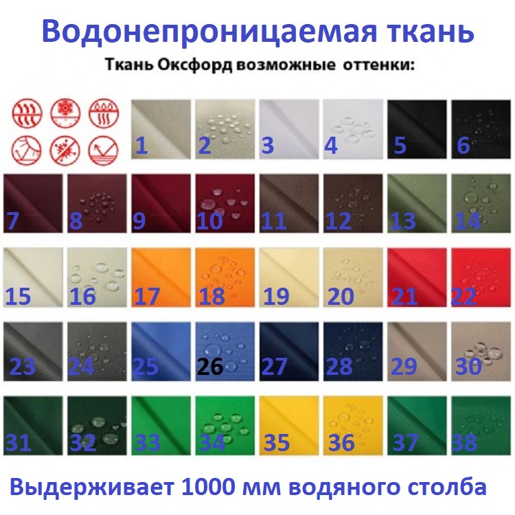 Изделия выполнены из влагонепроницаемой, прорезиненной ткани. Имеют необходимую документацию для реализации на территории РФ