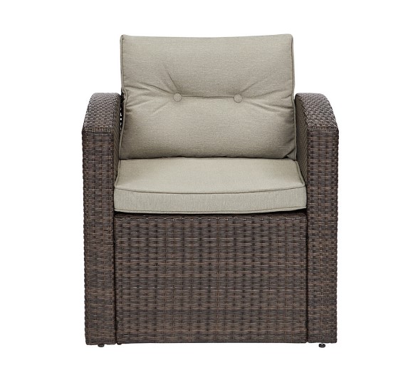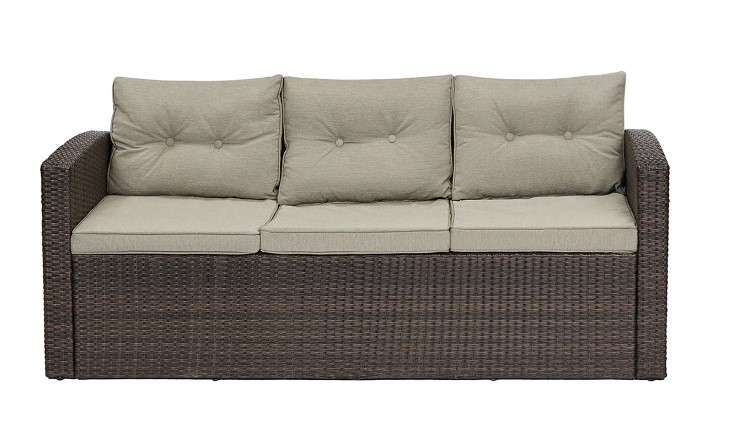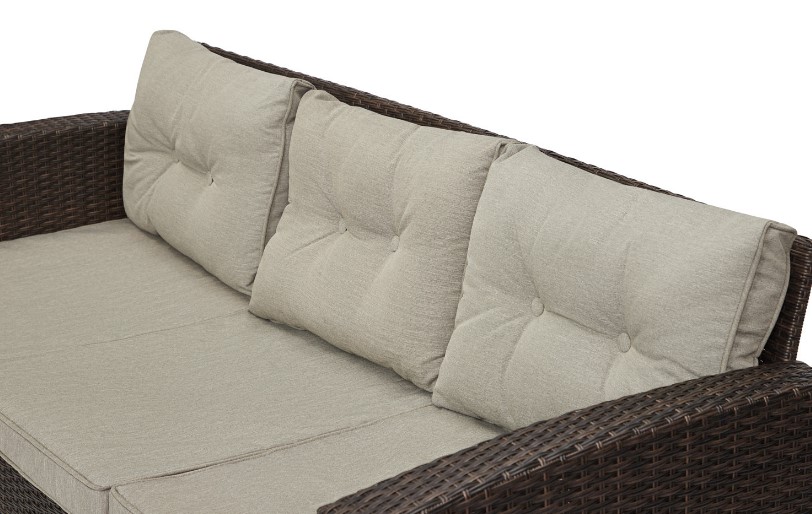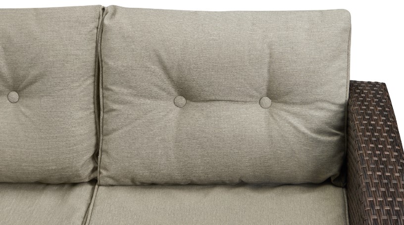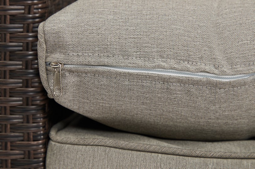 Эти подушки предназначены для комплекта садовой мебели, изготовлены они из очень качественного материала. В комплекте находится одна большая подушка для дивана и две маленькие подушки для кресел. Данный материал изготовлен из полиэстра, у него темно-серый цвет. Размер подушки для дивана составляет 102 на 52 см, а толщина 6 см. Две подушки для кресел имеют размер 51 на 52 см, а их толщина составляет 6 см.