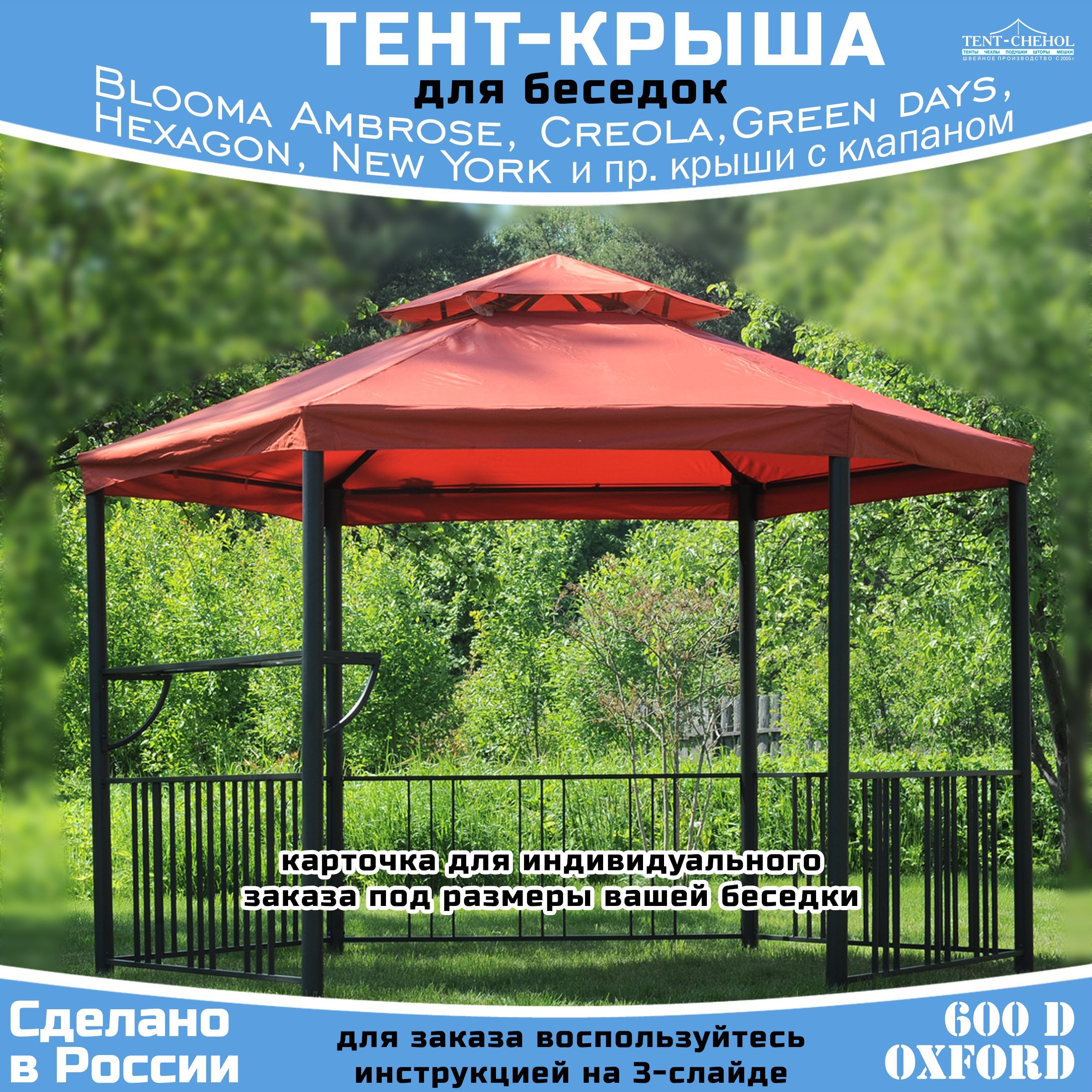 Купить Тент на крышу шестигранной беседки, красный, 600D (с клапаном) цена 12000 руб. в Москве и СПб с доставкой по России
