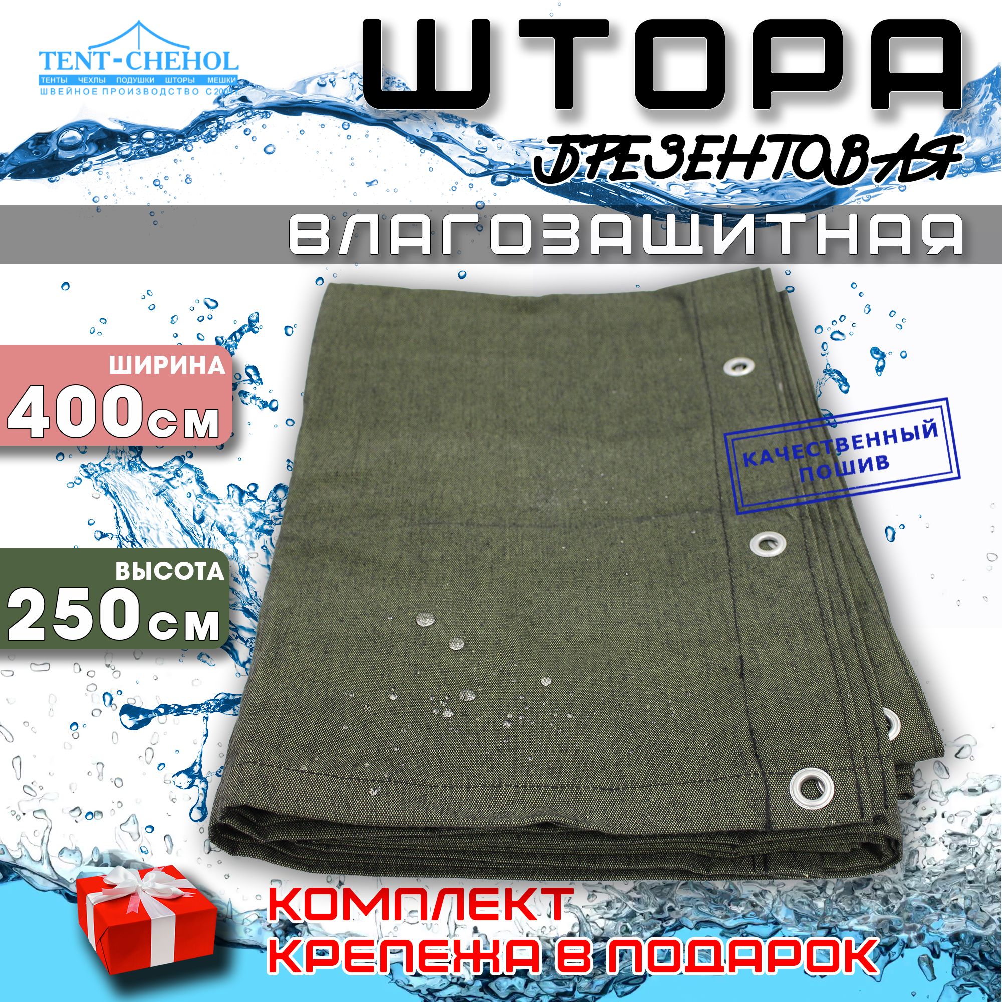 Штора изготовлена из усиленного водоупорного брезента плотностью 420 г/кв.м, соответствует нормам ГОСТ.