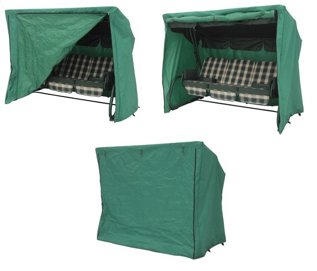 Чехол-укрытие для садовых качелей-беседок полностью покрывает подвесную конструкцию, защищая от грязи, пыли, ультрафиолета и атмосферных осадков. Таким образом, удается продлить срок ее службы, сохраняя презентабельный внешний вид.