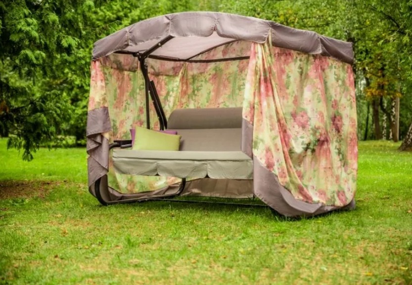 Тенты и шторы, предназначенные для садовых качелей способны очень хорошо защитить от осадков и прямых солнечных лучей. Это очень важно, так как краска на металлических частях качелей может сильно трескаться и облазить, а металл в тот момент, когда он контактирует с водой, будет подвергаться воздействию коррозии. Кроме того, негативно повлиять на лакокрасочное покрытие могут и ультрафиолетовые лучи, в данном случае краска будет шелушиться и отпадать, а цвет не будет таким ярким. Кроме того, выгореть могут и мягкие элементы, они будут выглядеть не так привлекательно. Благодаря тенту, предназначенному для садовых качелей можно защитить качели от падающих веток и птичьего помёта, из-за чего летний отдых станет хуже. Качели, у которых есть тент, выглядят намного более привлекательно, что тоже является огромным преимуществом в пользу выбора тента. Также такой тент может продаваться вместе с противомоскитной сеткой, благодаря чему вы также будете защищены от насекомых, которые сильно могут омрачить летний отдых.
