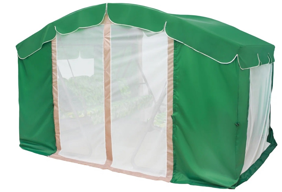 Вы можете приобрести тент-шатёр, предназначенный для садовых качелей, данный тент подойдёт для общих размеров садовых качелей 305 х 202 х 197 см. Вес данного тента составляет 1,5 кг, изготовлен он из такой ткани, как Оксфорд 210 светло-бежевого цвета с коричневой окантовкой. Также в комплекте с данным тентом находится антимоскитная сетка, которую с лёгкостью можно убрать при ветре или отсутствии насекомых.