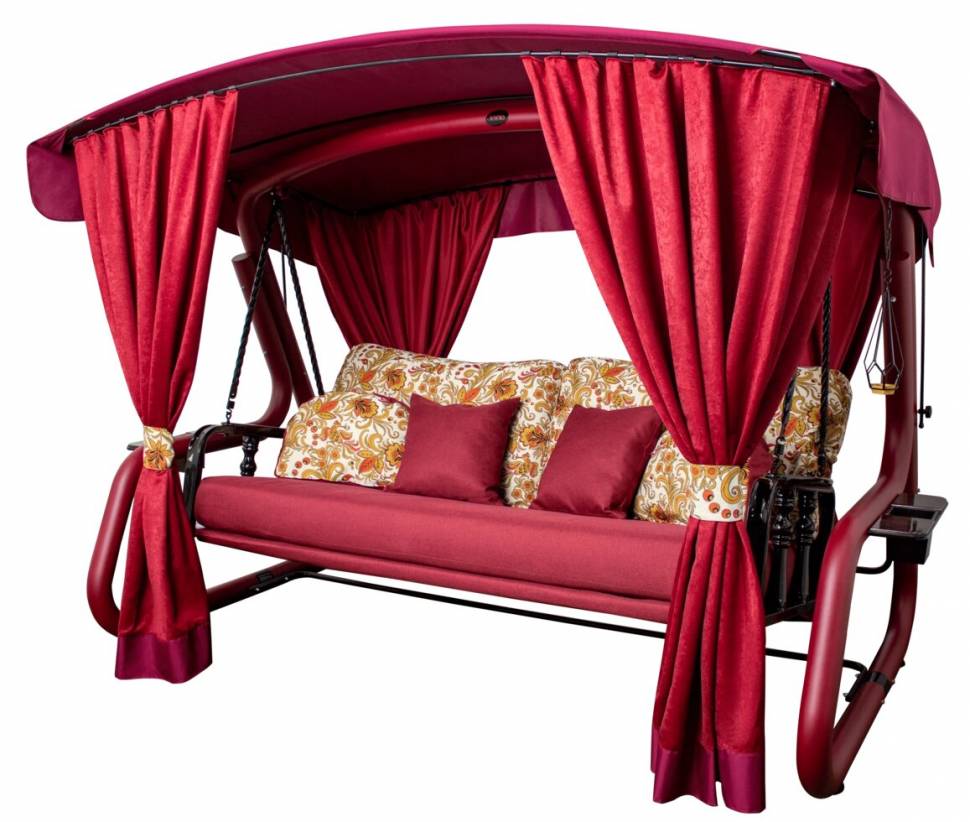 Мы предлагаем вам купить комплект для садовых качелей Эгоист четырехместных. Данный комплект выполнен в бордовом цвете, в него входит тент-крыша, а также москитная сетка. Тент изготовлен из материала оксфорд 600, у антимоскитной сетки также есть вставки на нижней части из данного материала. Подойдёт комплект для глубины садовых качелей 294 см, ширины 170 см, высоты 190 см.